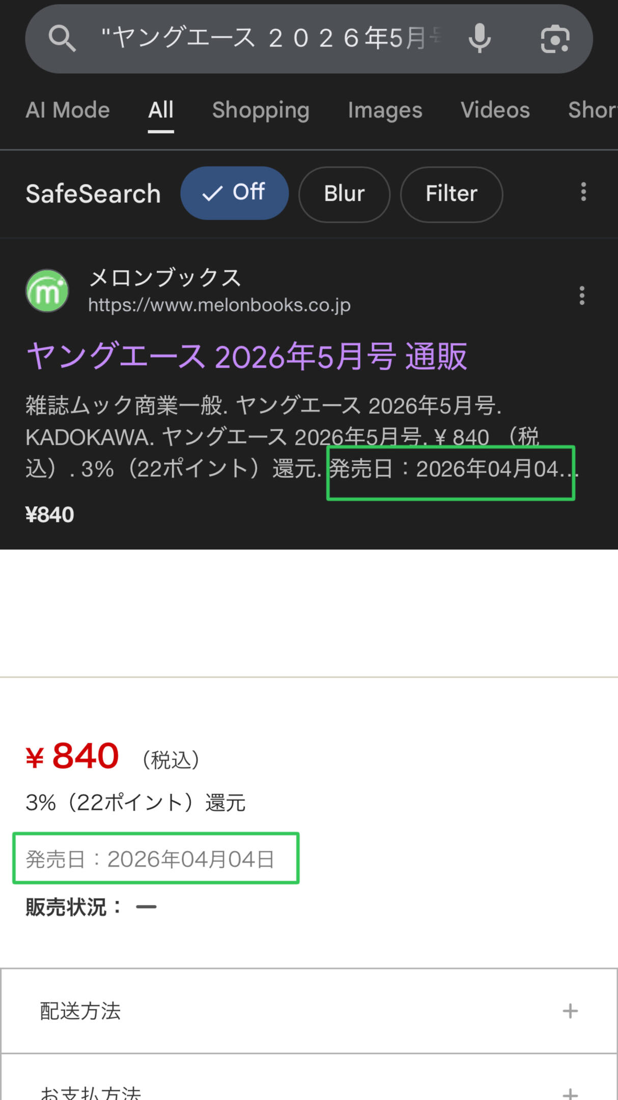 Searching "ヤングエース 2026年n月